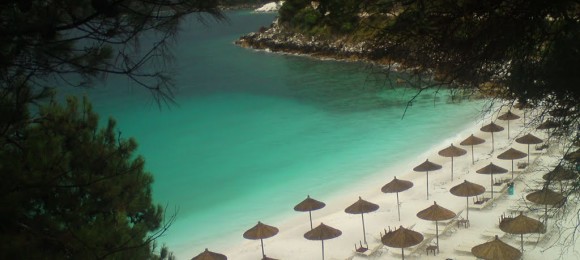 Another exotic beach with white sand and spectacular light blue waters. Set in a small green bay, it is 5 km from Limenas, but the access is quite difficult. Sun beds, umbrellas, a beach bar and other amenities are available.