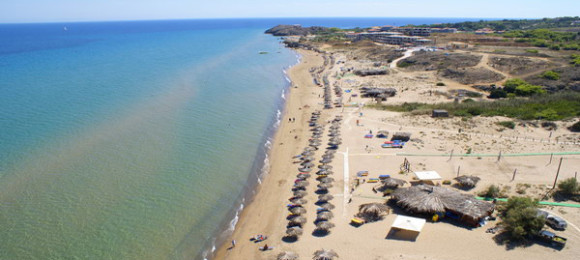 Wide and sandy, organized, with gorgeous crystal blue waters.