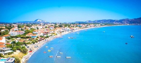 Tourist-packed, sandy and fully organized beach. It is the “home-base” of caretta-caretta sea turtles and part of the Greek National Marine Park. On the other hand, Laganas is also the island’s number one nightlife spot for 24/7 party-goers, with whatever this entails.