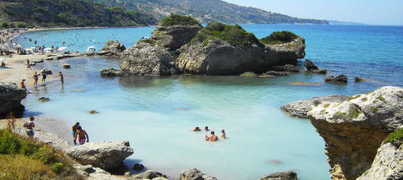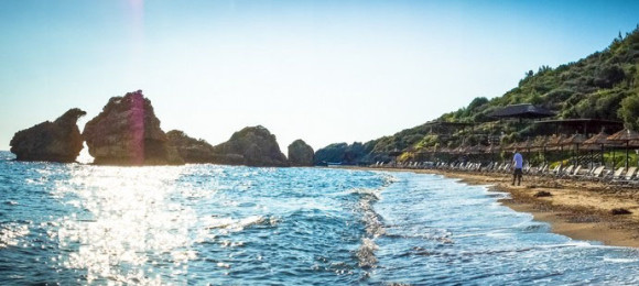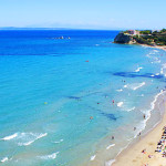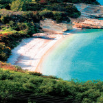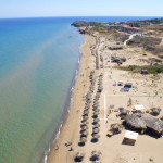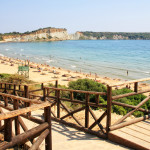 Sandy, popular, with interesting rock formations and a lovely landscape.