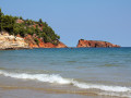 : The most impressive beach on Alonissos (and among the best in the Greek islands). It is a large, organized beach with exotic looks (white pebbles and transparent blue waters), set in a very scenic location. A cantina and a tavern are available here. 9.0 : Another gem beach. It features red cliffs that contrast magically with its blue waters, as well as the remains of the ancient city of Ikos. It’s partly organized and ideal for snorkeling. 9.0 : Megalos Mourtias is popular, wind-protected and features many amenities, while Mikros Mourtias is a quiet, nudist friendly cove. 8.0 : Don’t be fooled, because this beach is neither large nor sandy – on the contrary. However, it’s one of the island’s most pristine, with pebbles, lots of pine trees and zero facilities. Not very easy to access, but absolutely rewarding. In the area you can also find small coves to swim and relax, such as the beaches of Agii Anargiroi and Tsoukalia. Just make sure you carry your own supplies. 8.0 : A large, popular and fully organized beach, with golden sand, shallow waters, a tavern and water sports facilities. If you fancy a neighboring, more low-key option, the smaller, pebbly beach of Milia, hidden in a lovely pine-lush bay, is suitable for you. 8.0