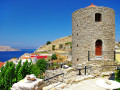 All visitors simply adore the island’s capital, one of the most photogenic among the Greek islands. Gialos is a preserved settlement comprised of amphitheatrically built, gorgeous colorful Italian era mansions, the trademark Clock Tower (gr Roloi) and public buildings, as well as stylish waterfront cafes and tavernas. 500 steps (the so called “Kali Strata”) lead to the atmospheric Chorio, the capital’s old hilltop village, with more neoclassical houses, a maze of alleys, museums, the remains of the Knights’ of St John castle and the church of Panagia tou Kastrou, among other sights. Elegant and serene, Symi celebrates colors and light, resembling a Greek island card postal you will never forget.
